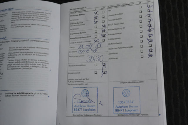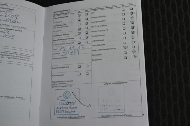 Scheckheft gepflegt bei VW, letzte Wartung bei 59.747KM