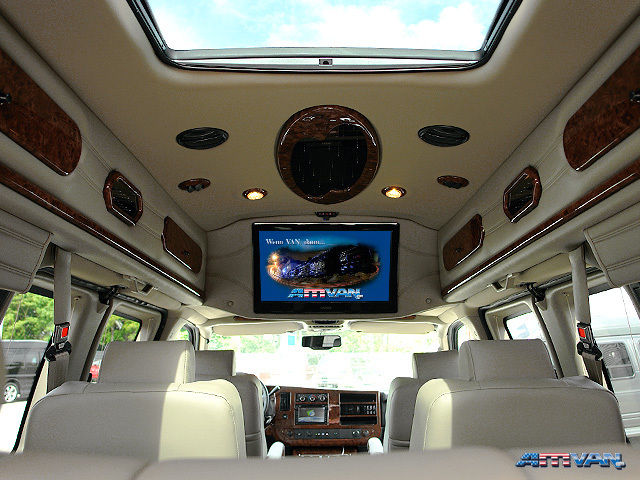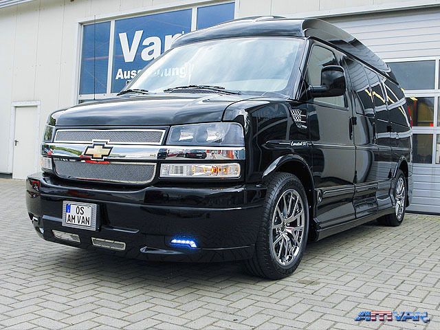 Model 2013 mit Leder antelope und hellem burl Holz, Flexfuel fährt mit 100 % E85 (rund € 1,- pro Liter) 20 Zoll Chromalufelgen, Einparkkamera mit Bildschirm im Innenspiegel, Opera Lights, beidseitig Klapptüren (8-Türer), 26 Zoll Bildschirm, exclusives Lederinterieur, Billet Chrom Grill, DVD, Tempomat, Armlehnen, Radio CD + MP3, USB, I Pod Docking Station, Edelholzstaufächer im Hochdach, exklusives helles Burl Holzinterieur, Becherhalter, schnurlose Kopfhörer, Kompass, elektrische Fenster- / Spiegel- / Sitz- & Bettverstellung, doppelte Klimaanlage mit getrennter Regelung, extra Radio CD für Fondbereich, Zentralverriegelung mit Fernbedienung, Sternenhimmel, Ausstellfenster, Captain-Chairs, Lederlenkrad, LTD-XSE, lackierte Vollverkleidung rundum, Frontspoiler mit integrierten LED Leuchten, elektrisches Sonnendach, diverse indirekte Beleuchtung, Kalthaltebox mit Becherhalter, natürlich wie alle unsere Vans auch mit