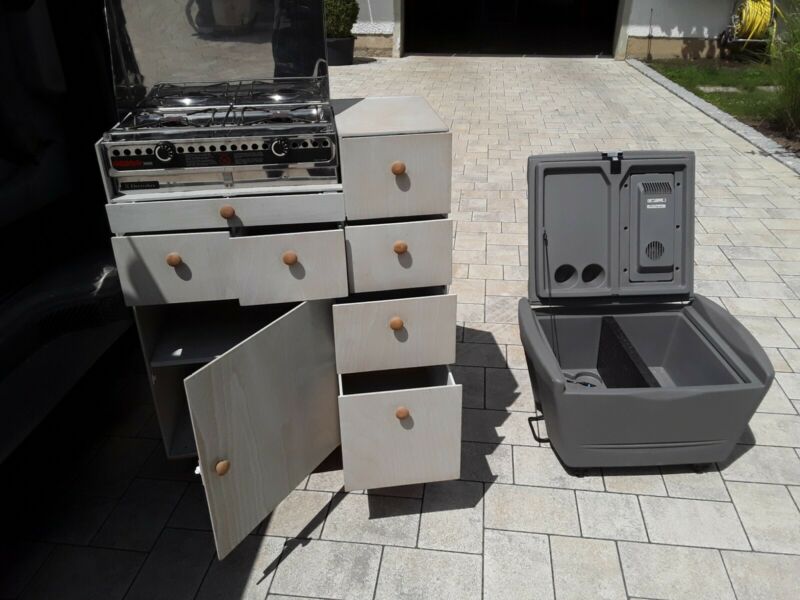 Kuchyňský blok, chladicí box, střešní nosič a nosič kol. K dispozici je také nová markýza.