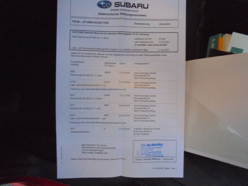 Servisní kniha a historie SUBARU