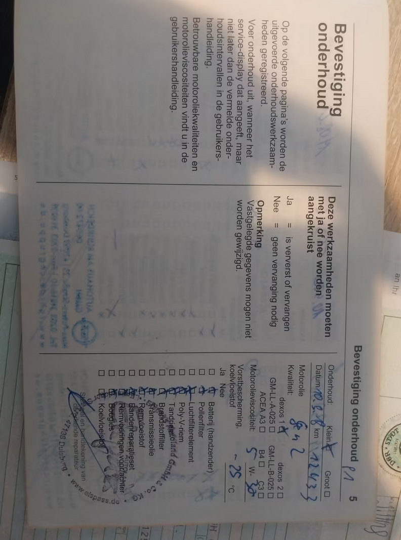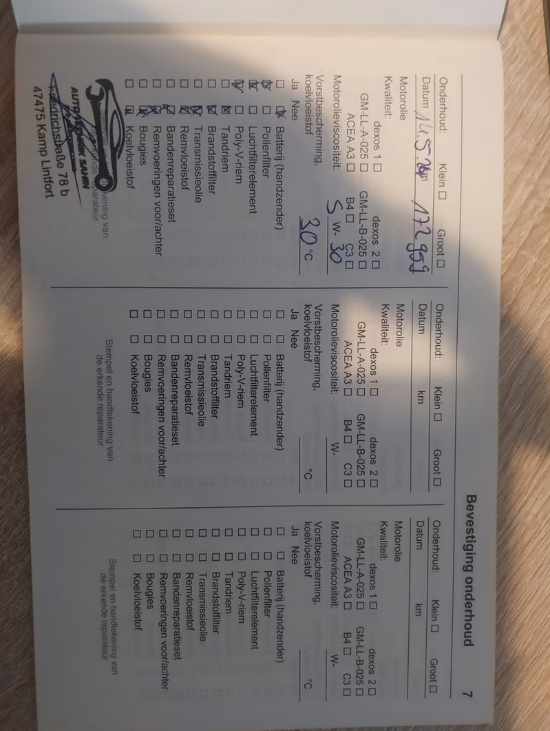 1. kontrola 10. března 2018 při 12 433 km u Opelu