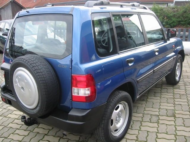 Ein recht ordentlicher Mitsubishi Pinin mit 5-Türen, Allradantrieb zuschalt.-und untersetzbar, Klimaanlage, Bordcomputer,Anhängerkupplung 1500KG, Servolenkung, Infrarot-Zentralverriegelung, Airbags, ABS, elektrische Fenster, el.Spiegel, Winterräder, Dachreling, Dachträger, Radio-Cass., Colorverglasung, Metallic-Lackierung, Reserverad hinten, 3.Bremsleuchte....uvm....