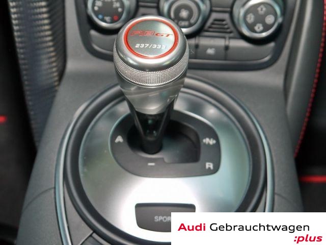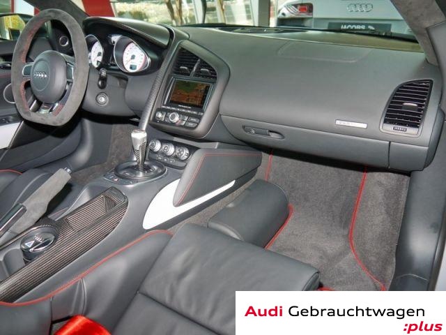 Antiblockiersystem, Antriebsschlupfregelung, Automatisch abblendbarer Innenspiegel, Colorglas, EDS, ESP (Elektronisches Stabilitätsprogramm), Elektronische Wegfahrsperre, Fensterheber elektrisch, Keramikbremse, Metallic, Radio mit CD, Regensensor, Seitenairbags, Servolenkung, Servotronic, Sportlederlenkrad, Wärmeschutzverglasung Sitze Alcantara mit Schriftzug R8 GT, Innenfarbe schwarz, Multi Media Interface MMI, Multi-Funktions-Display, Audio-Schnittstelle: Audi music interface, Sportsitze: Sport-Schalensitze Audi exclusive Sitzschale schwarz, Sport-Schalensitze Audi exclusive Sitzschale Carbon, Bremsassistent, 4 x Airbags, Sportlederlenkrad: Sport/Leder - 3-Speichen unten abgeflacht mit Schaltfunktion, Lenksäule verstellbar, Sportpaket: Rennsport-Paket, Dekoreinlagen Aluminium, Lichtsensor, Sound-System Bang + Olufsen, Außenspiegel Carbon Audi exclusive, LED Scheinwerfer, Sport-Schalensitze Audi exclusive, Sitzschale schwarz, Satz Adapterkabel Audi music interface, Abdeckung Instrumententafel Audi exclusive Carbon, Abdeckung Mittelkonsole Audi exclusive Carbon, Sport-Schalensitze Audi exclusive, Sitzschale Carbon, Vorrüstung Diebstahltracking-Anlage / Ortungsassistent, Motorraumabdeckung Audi exclusive, Audi GW:plus, Irrtümer und Änderungen vorbehalten., CO2-Effizienzklasse: G, Nummer: 16796AZ